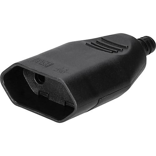 Euro-Kupplung schwarz schraubbar Kunststoff, für schutzisolierte Geräte, mit Schraubanschluß und Zugentlastung, für Leitung H05VV-F 2x0,75mm² , 250V/2,5A