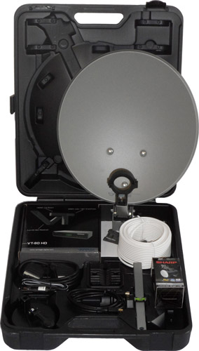 Komplette EasyFind HDTV Camping-SAT-Anlage im Kunststoff-Koffer, Stahl-Offset-Spiegel 40cm, mit Saugfuß, Kompass, Koaxkabel, Scart- und HDMI Kabel, mit digitalem Receiver (220V/12V, 1x Scart, 1x HDMI, numerisches Display). Bitte beachten Sie, dass der Receiver keinen Modulator (für ältere Fernseher ohne Scart) hat. Weitere Informationen entnehmen Sie bitte dem Datenblatt in den Detail Angaben.