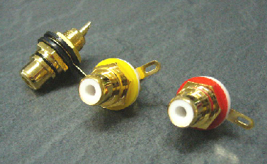Cinch-Buchse vergoldet. mit Isolierscheiben gelb