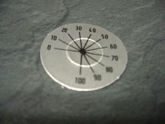 Skalenscheibe aus Alu-Folie selbstklebend, silberfarbig, mit schwarzer Beschriftung 0-100 Maße Ø 25mm